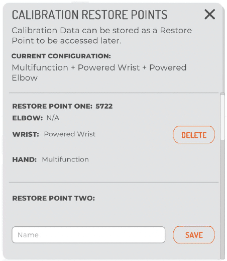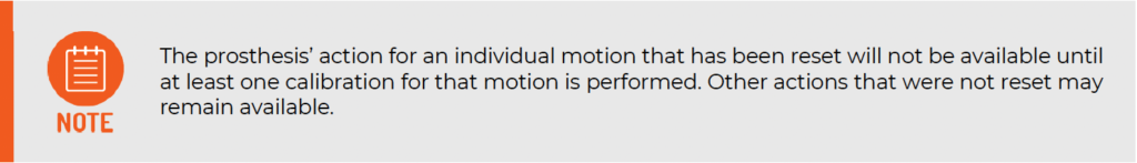 Certain scenarios (electrode relocation, major socket change, prosthetic device changes, overall control desire changes, surgical intervention, control has become unreliable/unstable etc.) may require full reset of the calibration memory to a blank, starting state.